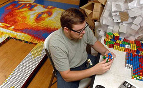 Umjetnik po imenu Pete Fecteau proveo je upornih 40 sati stvarajući zanimljivu sliku sastavljenu od 4.242 Rubikove kocke.